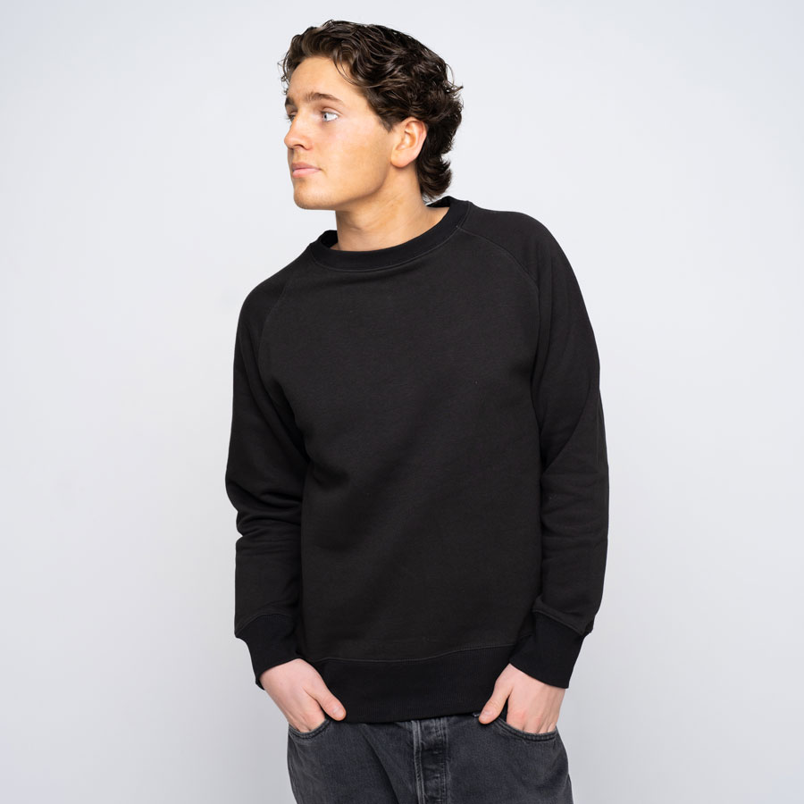 En klassisk sweatshirt med gode detaljer, som flosset innside, doble ribber av Lycra-stoff i ermer, hals og linning. Halvmåneformet forsterkning sydd inn i nakkepartiet og vevet fortsterkningsbånd i nakkesømmen.