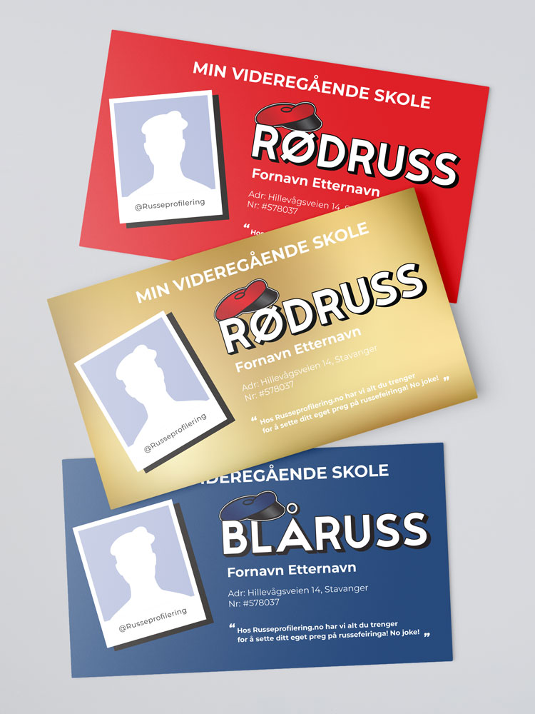 Russekort du kan tilpasse helt selv! Last opp din egen logo eller bilde på baksiden, rediger tekstene som du vil – full kontroll!